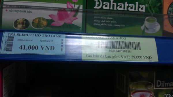 参考までに画像をつけたSLIMUTEAは1箱(2グラム×20袋)で41,000VND(約200円)。