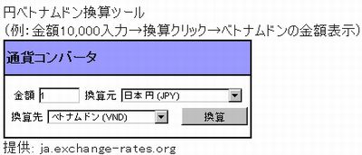 いまさらですが、円・ベトナムドンの為替レートに関するツールをブログ内に設置しました。