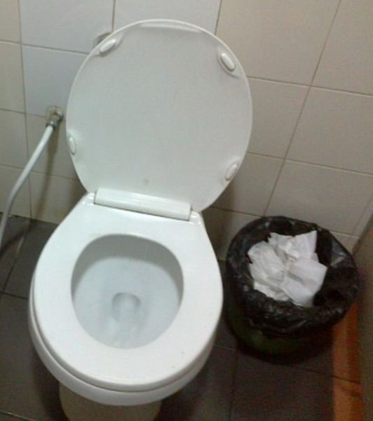 そのためにお尻を拭いた紙をバケツに入れるんですねー。