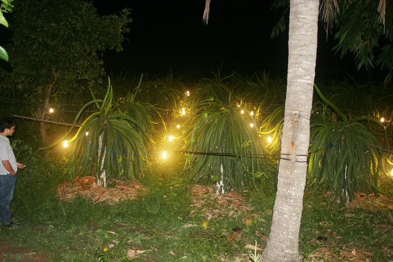 ドラゴンフルーツの本来の旬の季節は夏から秋にかけて。しかしベトナムでは電球を使って一年中栽培されているようです。