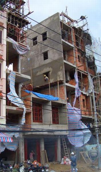 初めてベトナムに来たとき、ノイバイ空港から旧市街に向かう車で日本とのギャップに驚かされることが多々ありました。そのうちの一つが建物。