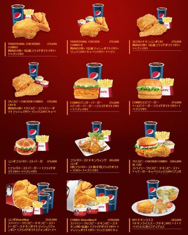 せっかくなのでベトナムKFCのメニューの抜粋画像を!