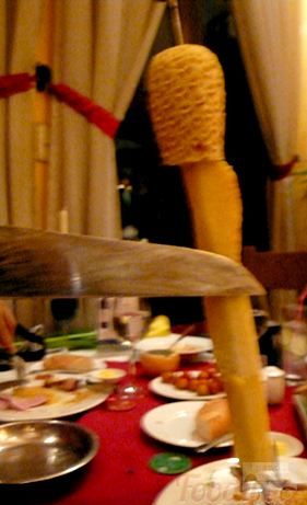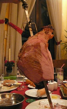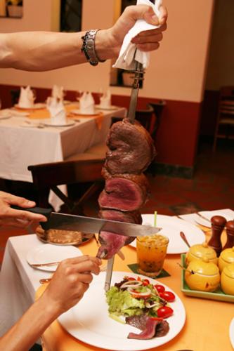 客の各テーブルに焼きたてのシュラスコを店員が持ってくる形式のお店です。