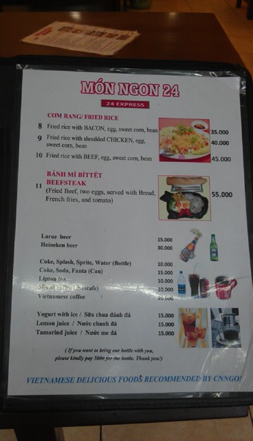 メニューは写真+英語も併記されていて、ベトナム初心者でも料理の中身が簡単にわかるようになっています。