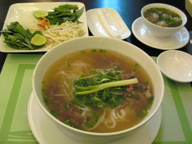 フォーと一緒に出てくるもやしと緑色の野菜は、フォーの上にのせて食べるか、