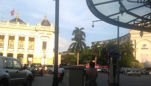 場所はハノイの一等地目抜き通りともいえる街区にあります。目の前には写真のとおりヒルトン・ハノイ・ホテル。